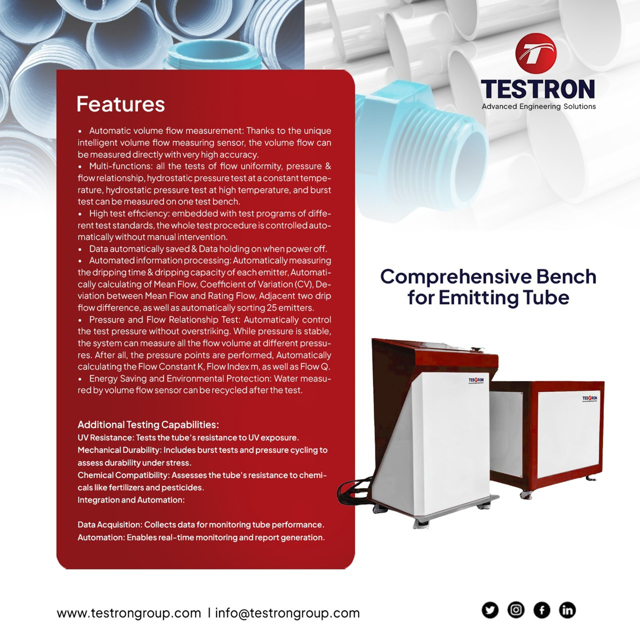 Testron Group is recognized globally as a reliable comprehensive bench for emitting tube manufacturer providing advanced industrial testing solutions.