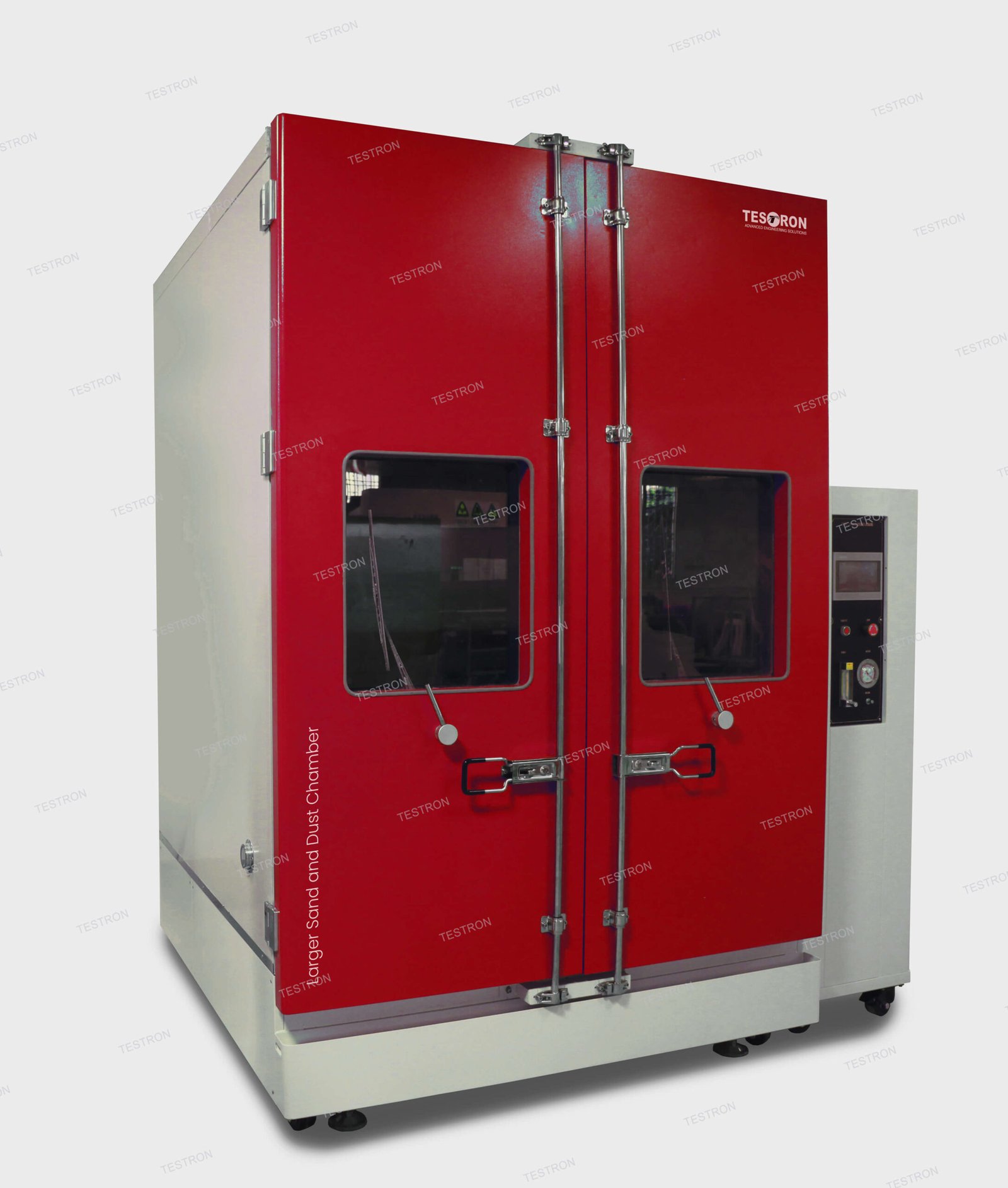 A larger chamber is used to simulate dust and sand exposure on large or multiple products, ensuring durability and compliance with industry standards.